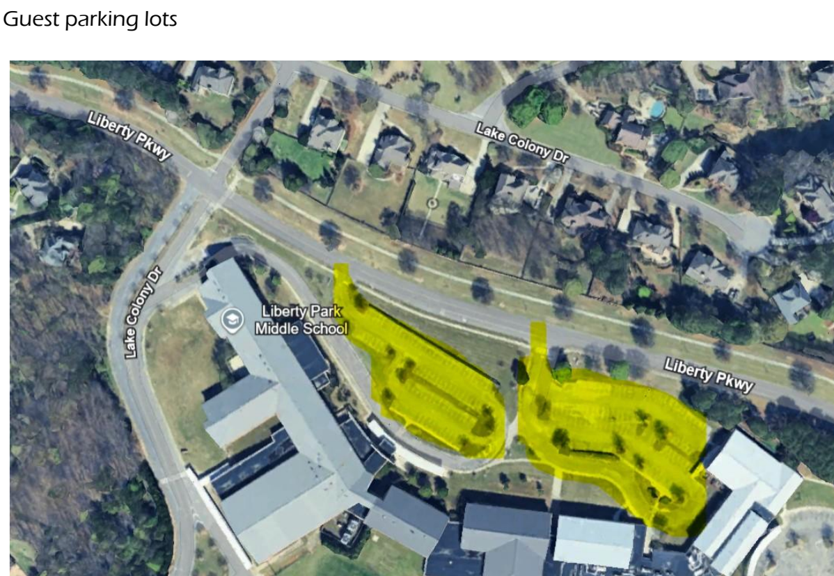 For guests parking at Liberty Park Middle School: Navigate to 17035 Liberty Parkway, Vestavia Hills, AL. Take the first or second entrance off of Liberty Parkway into the parking lot. Between 3:15pm to 3:45pm, the shuttles will be arriving every five to ten minutes to transport guests to the venue. A security officer will be present at the parking lot throughout the event.
